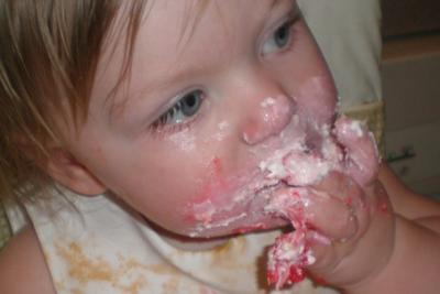 The birthday girl's smash cake was a homemade yellow cake, with white frosting, red frosting piped around the edges, and red-white-blue sprinkles.