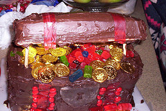 A treasure chest cake would be perfect for a pirate party to use as your pirate cake.
